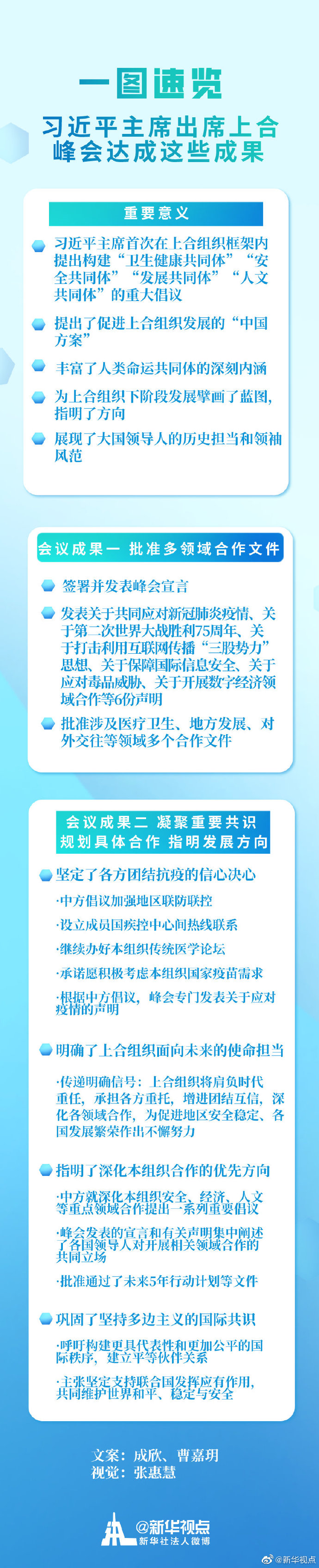 上海合作組織成員國元首理事會第二十次會議10日舉行,國家主席習近平出席并發表重要講話。此次會議由上海合作組織輪值主席國俄羅斯主辦,以視頻方式舉行。習近平主席講話的重要意義主要有哪些?此次峰會簽署了哪些文件?提出了哪些倡議?請戳圖↓?
