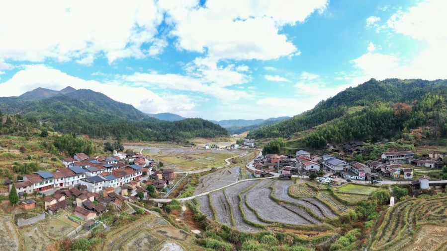 這是11月19日拍攝的大山之中的嶺下村(無人機(jī)照片)。新華社記者 姜克紅 攝