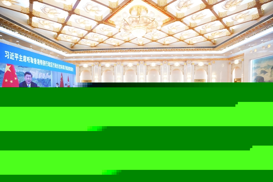 1月27日,國家主席習近平在北京以視頻連線方式聽取了香港特別行政區行政長官林鄭月娥2020年度的述職報告。新華社記者 劉彬 攝