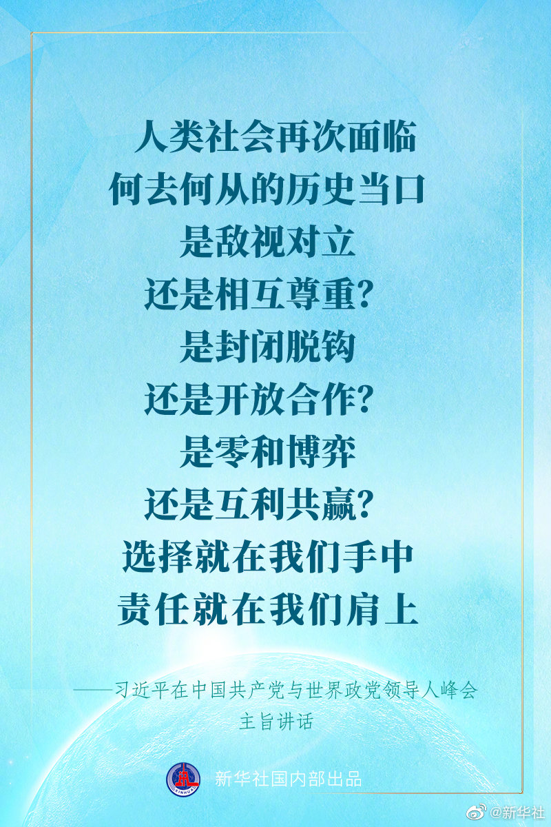 7月6日晚,中共中央總書記、國(guó)家主席習(xí)近平在北京出席中國(guó)共產(chǎn)黨與世界政黨領(lǐng)導(dǎo)人峰會(huì)并發(fā)表主旨講話。峰會(huì)以視頻連線方式舉行。一起來(lái)看金句↓