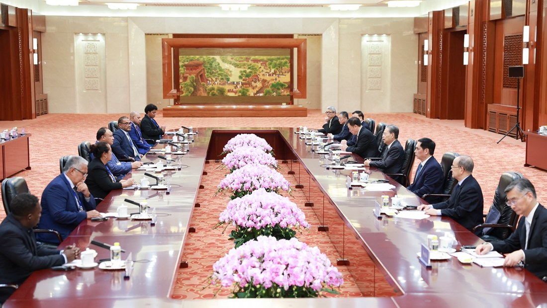 赵乐际表示,在习近平主席和太平洋岛国领导人战略引领下,中国同太平洋岛国关系保持良好发展势头。中国始终是岛国值得信赖的好朋友、可以依靠的好伙伴。中方愿同岛国一道,增进政治互信,拓展互利合作,加强共建“一带一路”和《蓝色太平洋2050战略》对接,密切多边协作,携手落实四大全球倡议。加强立法机构多层级、多领域交往,深化治国理政和立法、监督经验交流,为双方合作提供法治保障。