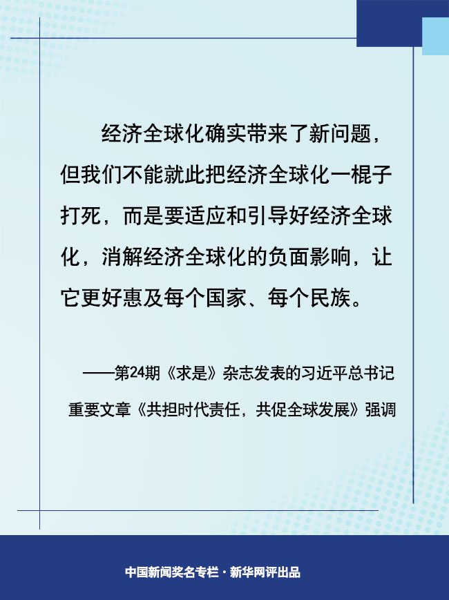 12月16日出版的第24期《求是》雜志,發(fā)表中共中央總書記、國家主席、中央軍委主席習(xí)近平的重要文章《共擔(dān)時(shí)代責(zé)任,共促全球發(fā)展》。文章深刻洞察經(jīng)濟(jì)全球化的歷史大勢(shì),深刻分析世界經(jīng)濟(jì)發(fā)展面臨的共同難題,呼吁國際社會(huì)以合作應(yīng)對(duì)挑戰(zhàn),適應(yīng)和引導(dǎo)好經(jīng)濟(jì)全球化。