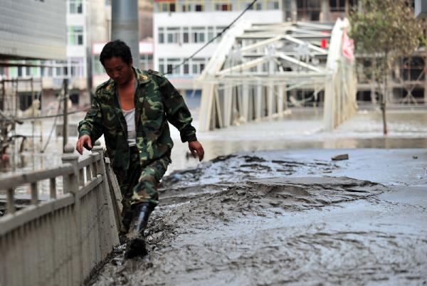 · 武警部隊挖開一寬溝渠 舟曲城區內積水開始下泄白龍江