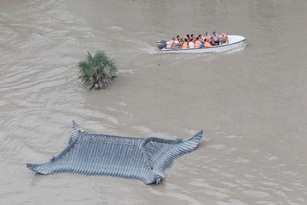 沖鋒舟為舟曲受災群眾開辟水上通道