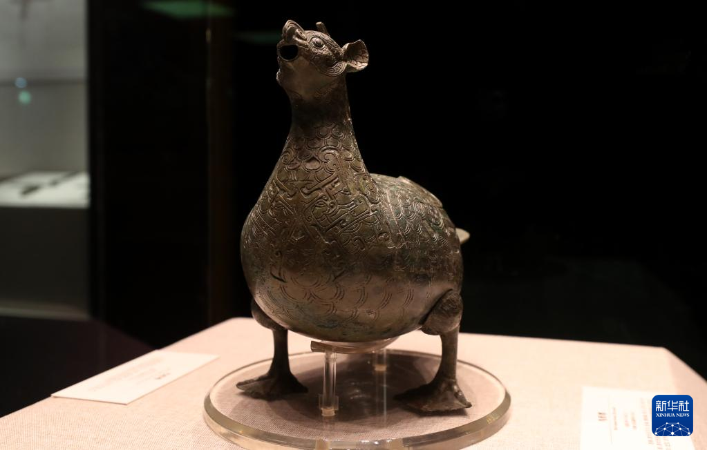 3月14日拍摄的在展览中展出的战国鸟形尊。