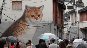 5月11日,游客在陕西历史博物馆内观看唐章怀太子墓《客使图》。《客使图》描绘的是唐代外交机构鸿胪寺官员接待外国使节的场景。