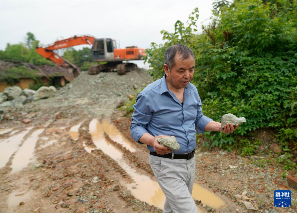 6月8日,刘法星从松阳县一处古龙窑遗址间的矿堆中找到用来配釉的矿石。