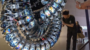 7月21日,一位观众在上海当代艺术博物馆参观“摩登巴黎”展的建筑设计展品。