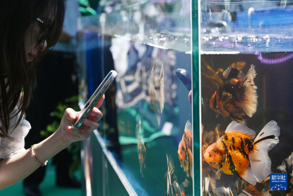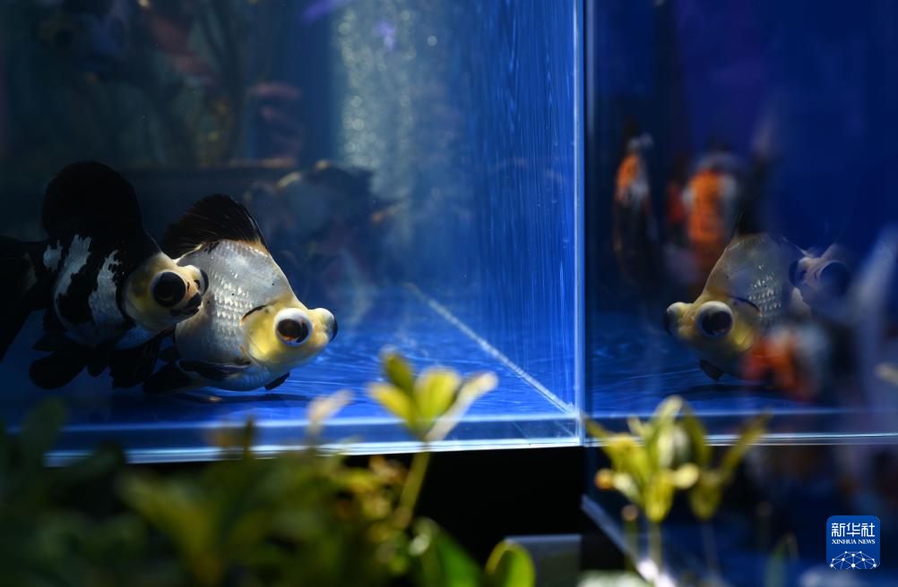 这是展出的熊猫蝶尾金鱼(8月28日摄)。