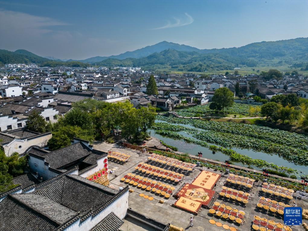 地处皖南山区的安徽省黄山市徽州区呈坎古村自古都有晒秋习俗。近年来,晒秋时节,该村村民会将农作物在村中广场集中晾晒,构成一幅五谷丰登的秋收画卷,吸引不少游客前往观赏,成为当地秋日里的旅游特色。