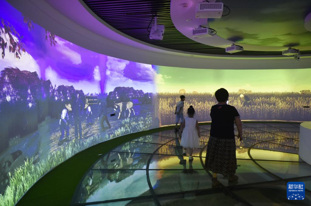 9月16日,小朋友在温县小麦博物馆内体验电子互动设备。