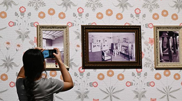 10月9日,市民带着小孩在上海光华创意街区一处涂鸦墙前驻足观看。