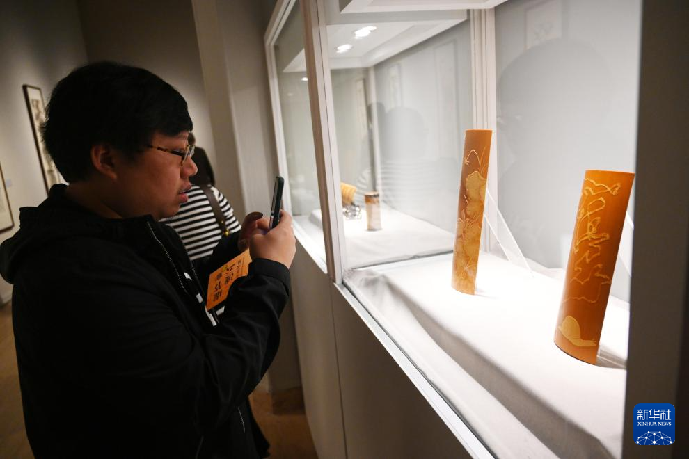 当日,“虚节凌云——徐秉方艺术展”在中国美术馆开幕。徐秉方是国家级非物质文化遗产常州留青竹刻技艺代表性传承人。本次展览展出徐秉方先生和其父亲、女儿三代人所作竹刻、书画、壶刻精品百余件,展览将持续至10月24日。