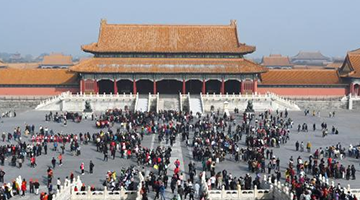 11月5日,在湘潭市博物馆,观众在观看齐白石作品《延年》。