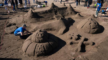 11月5日,在湘潭市博物馆,观众在观看齐白石作品《虾蟹图》。