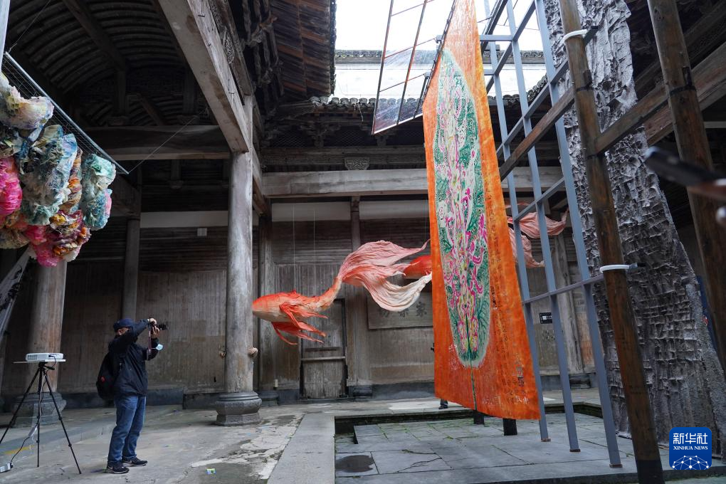 安徽黄山:古祠堂里的纸工艺展-新华网