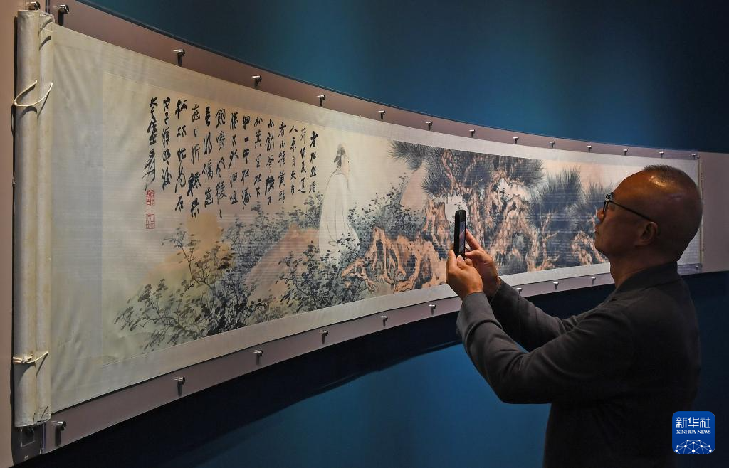 11月24日,在香港会议展览中心,观众拍摄张大千作品《天台道者》。