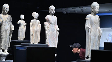 12月8日,工作人员在开箱仪式上展示卡拉瓦乔的作品《捧果篮的男孩》。