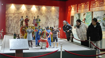 1月21日,游客在豫园商城中心广场赏灯拍照。