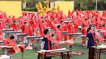 1月28日,书法家们现场为市民写春联、福字。