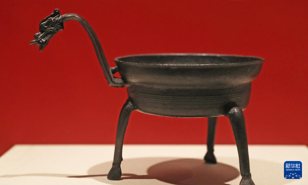 2月2日在辽宁省博物馆拍摄的龙首铜鐎斗。