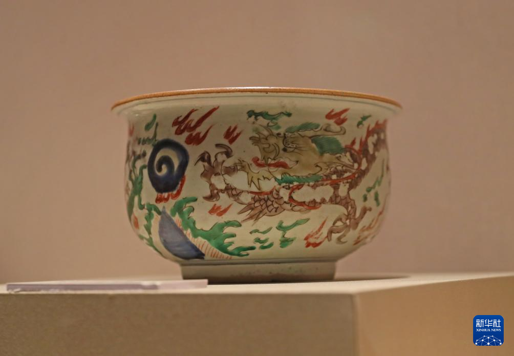 2月2日在辽宁省博物馆拍摄的五彩二龙戏珠纹香炉。