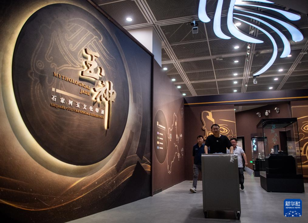 3月30日,工作人员经过“玉神——石家河玉文化特展”展厅。