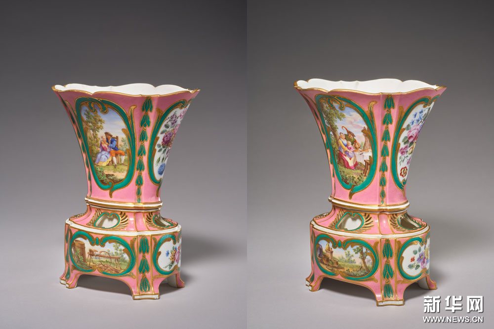 淡紫地彩绘描金风景人物图蛋形瓶一对 凡尔赛宫与特里亚农宫国立博物馆藏