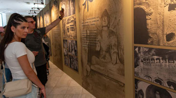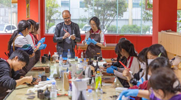 5月20日,《越剧》特种邮票设计师丁筱芳(左)、丁阳父子介绍创作过程。