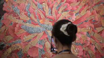 5月20日,来自辽宁的越剧爱好者罗菲展示《越剧》特种邮票之《九斤姑娘》。