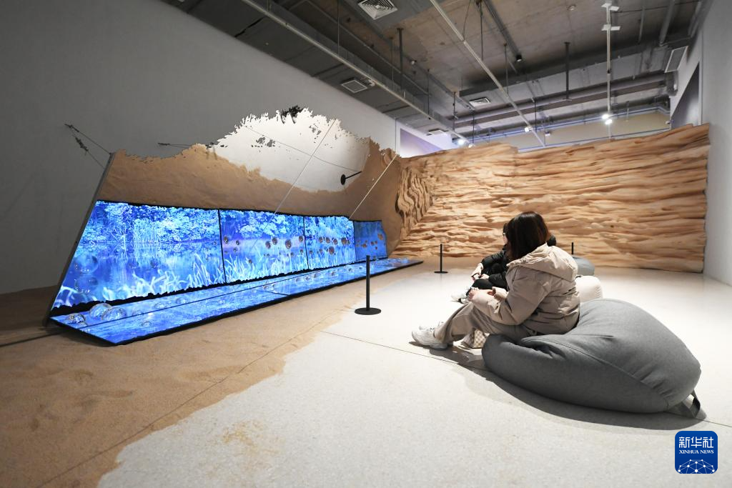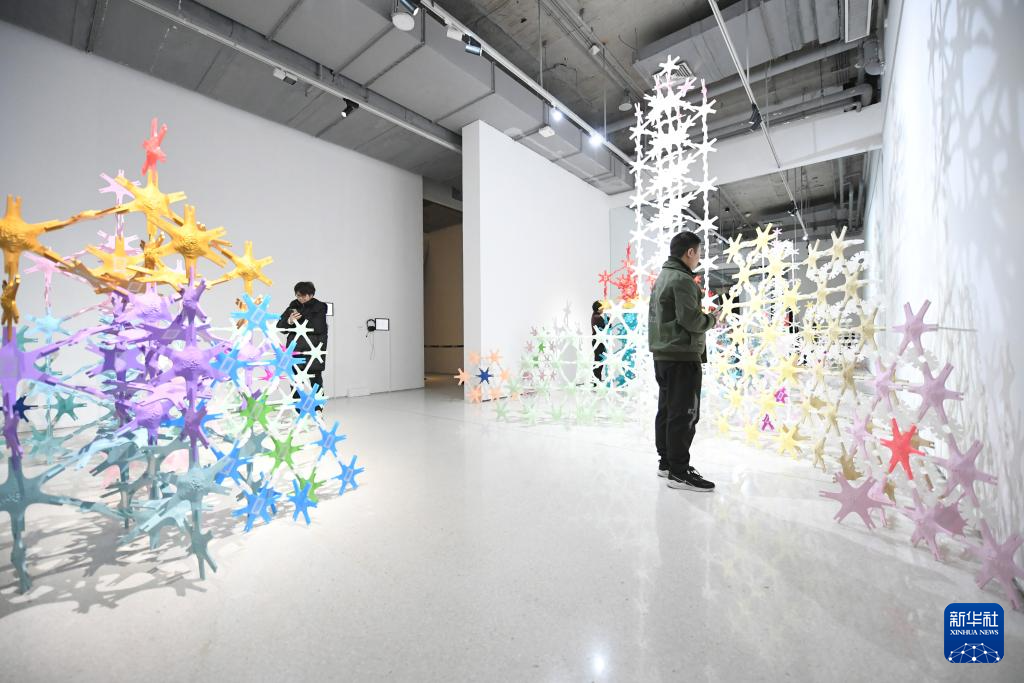12月16日,在北京时代美术馆,观众参观《能量宇宙》艺术展。