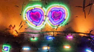 1月7日,在哈尔滨市兆麟公园,游客在观赏冰灯。