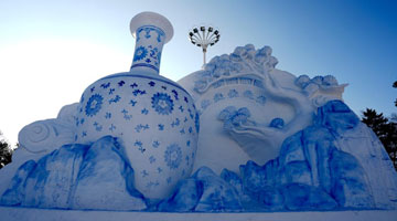 1月16日在故宫神武门城楼拍摄的展览海报。
