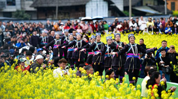 3月13日,孙朋(右)将一对来到店里订做银饰的老年顾客送出店门。