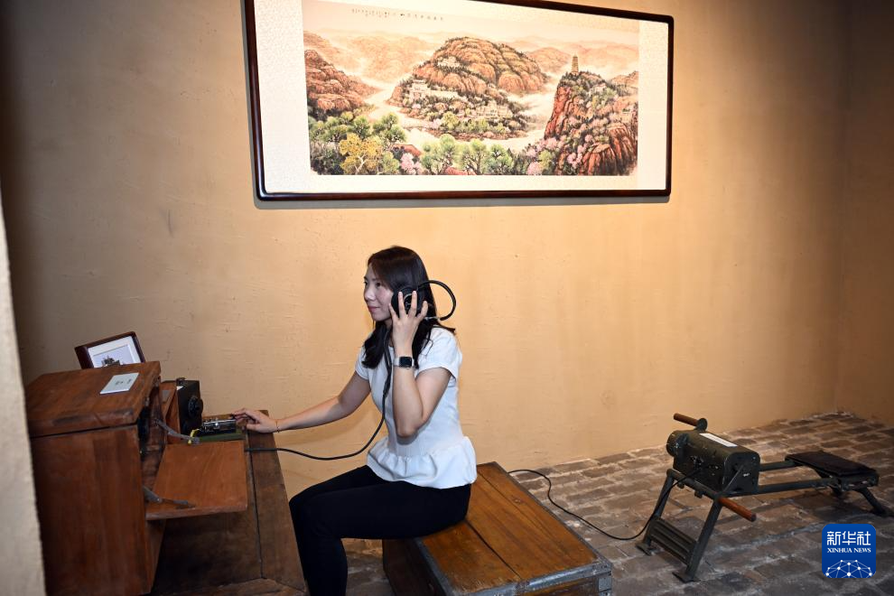 8月26日,观众体验延安时期新华社使用过的小型收发报机和手摇马达模型。