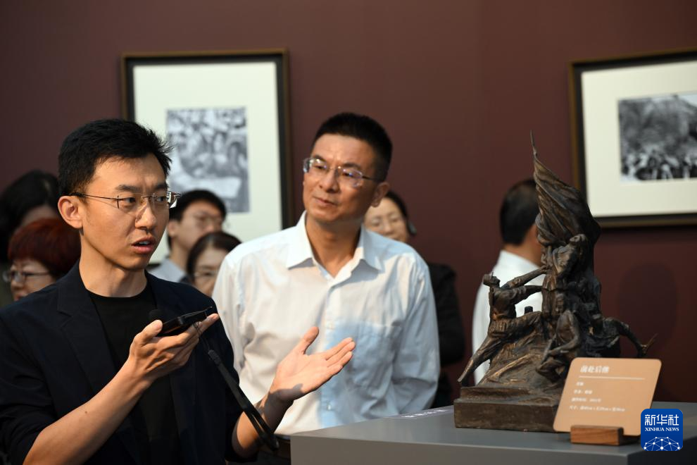 8月26日,由新华通讯社主办的“国社之镜·世纪光影之人民必胜”艺术展在北京国家金融信息大厦开展。展览共分为五个篇章,以中国战场为主视角,通过140余张珍贵历史照片、抗战文物和十余件著名艺术家的绘画及雕塑作品,铺展出一幅气壮山河的抗战全景图。