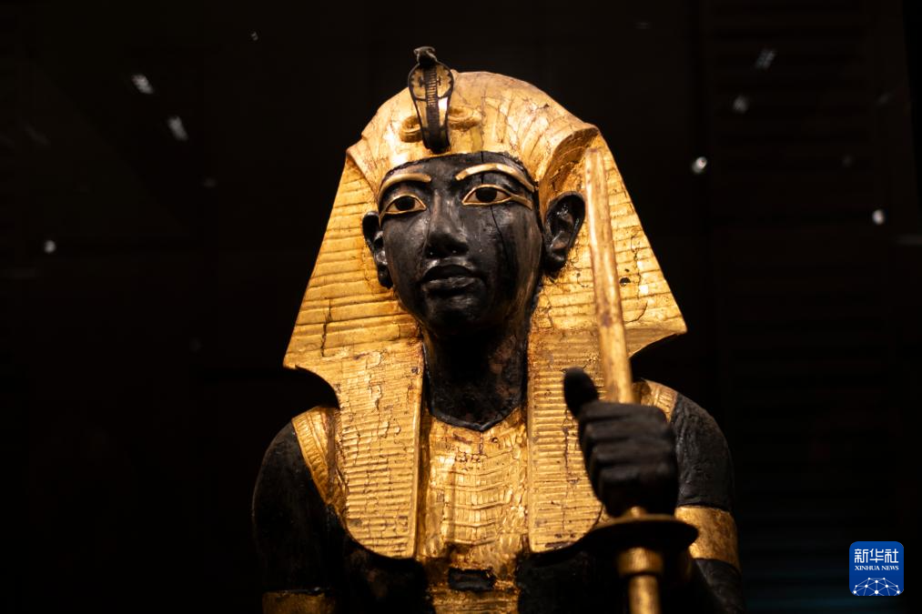 这是12月20日在埃及吉萨的大埃及博物馆拍摄的法老图坦卡蒙的黄金面具。