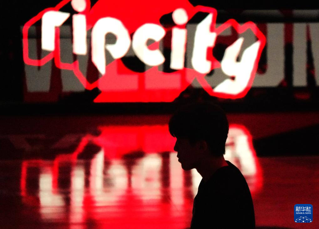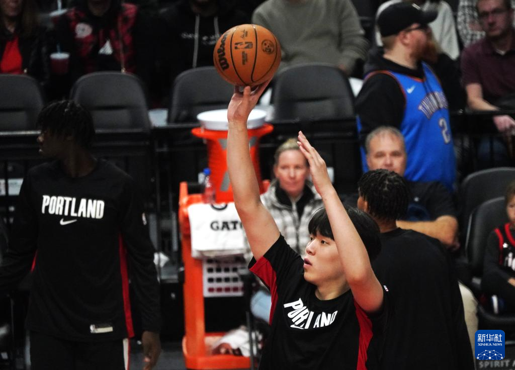 11月5日,开拓者队球员杨瀚森在比赛前。
