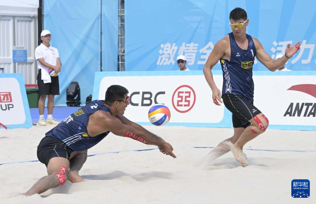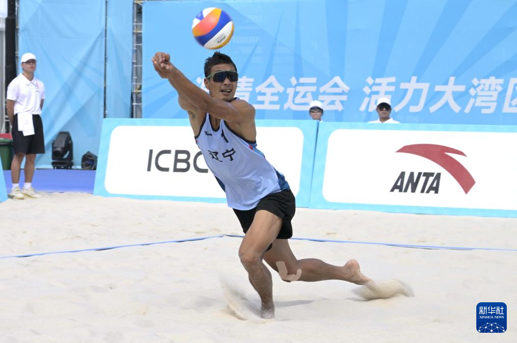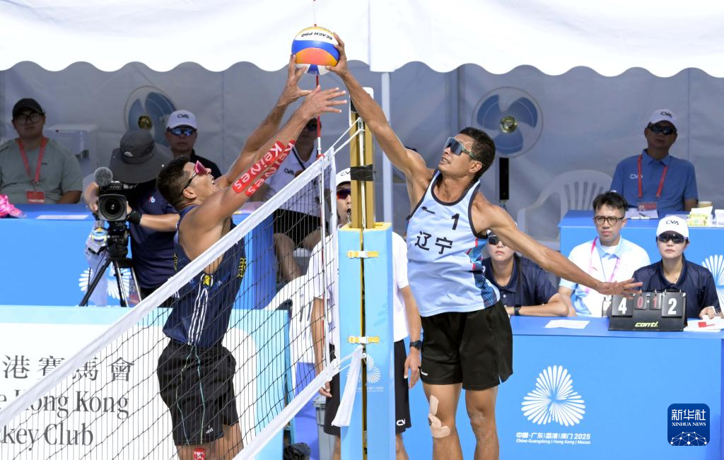 当日,第十五届全国运动会沙滩排球男子1/8决赛在香港维多利亚公园进行。