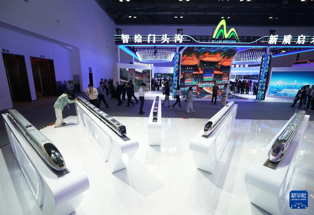 5月8日,观众在第二十七届中国北京国际科技产业博览会体验时速350公里复兴号动车组自动驾驶模拟。