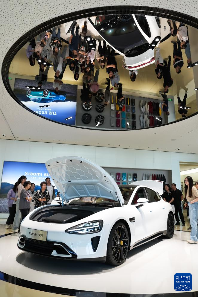 6月16日,参观者在北京小米汽车工厂的体验中心了解SU7汽车。
