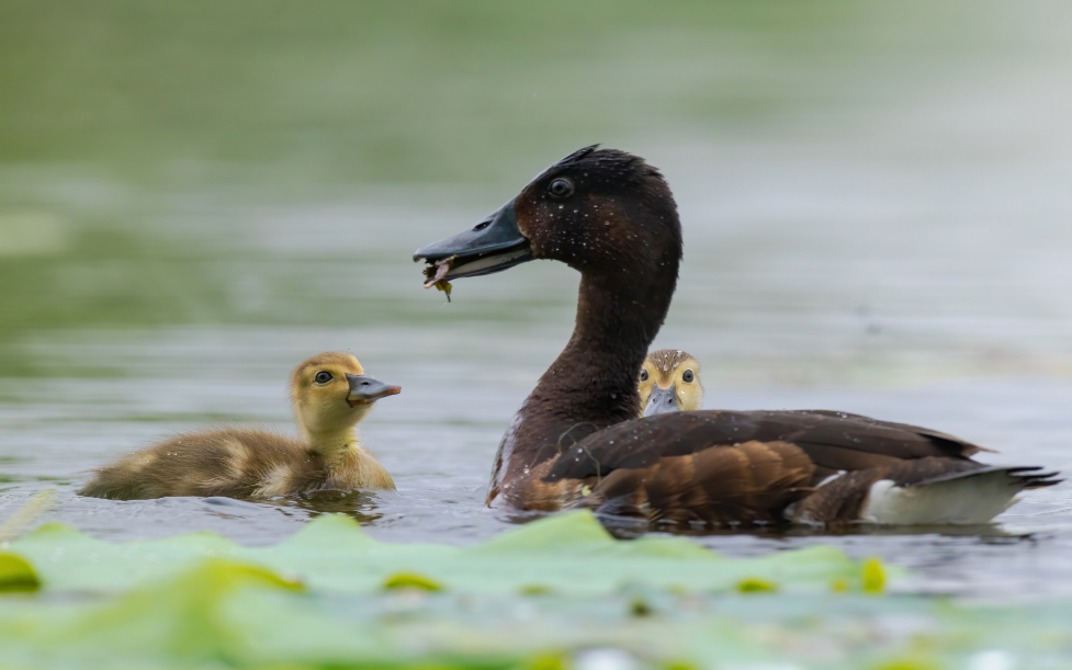 青头潜鸭喂雏鸭。周兴芜摄(国家林草局供图)