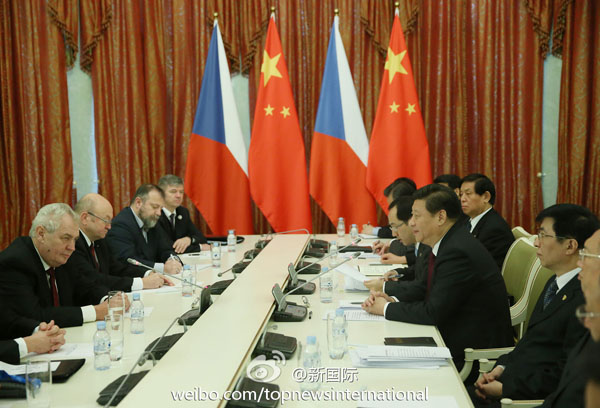 ????新華網北京2月7日電 據新華社“新國際”微博報道,習近平7日在索契會見捷克總統澤曼時說,今年是中捷建交65周年,捷克也剛組建新政府。雙方要以此為新的良好開端,就兩國關系指導原則和發展方向達成新共識。中方重視捷克在歐盟內發揮的獨特作用,贊賞捷克積極致力于促進中東歐國家同中國的合作。