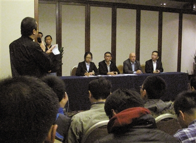 昨日13時(shí)40分許,馬航相關(guān)負(fù)責(zé)人在麗都飯店召開家屬通報(bào)會(huì)。