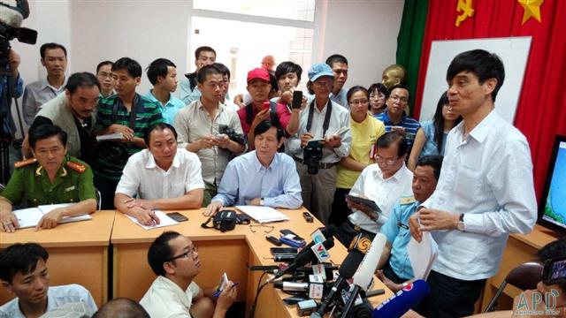 ????設(shè)在富國(guó)島的越南搜救前線指揮辦公室11日召開首次聯(lián)席會(huì)議。范貴肖主持會(huì)議并向新聞界通報(bào)越南搜救情況。