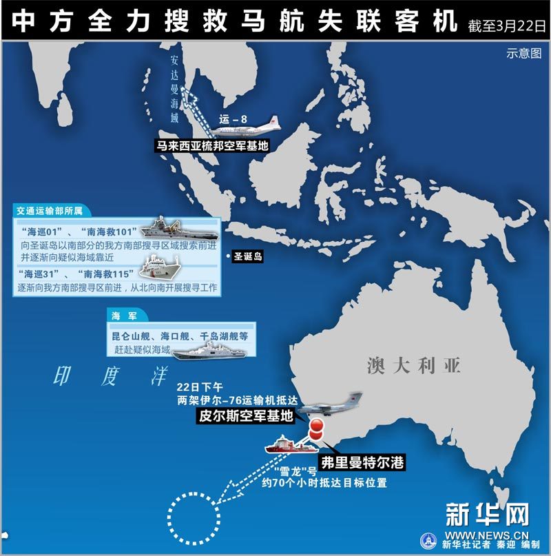 圖表:中方全力搜救馬航失聯(lián)客機(截至3月22日) 新華社記者 秦迎 編制