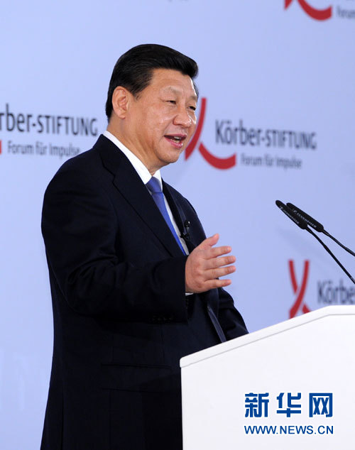 ????新華網(wǎng)柏林3月28日電(記者 班瑋 徐劍梅 何夢(mèng)舒)當(dāng)?shù)貢r(shí)間3月28日下午,國(guó)家主席習(xí)近平應(yīng)德國(guó)科爾伯基金會(huì)邀請(qǐng),在柏林發(fā)表重要演講,闡述中國(guó)和平發(fā)展道路和獨(dú)立自主的和平外交政策,強(qiáng)調(diào)中國(guó)走和平發(fā)展道路是中華民族熱愛(ài)和平的文化傳統(tǒng)的繼承和發(fā)揚(yáng),是中國(guó)人民從自身經(jīng)歷中形成的自覺(jué)選擇,是思想自信和實(shí)踐自覺(jué)的有機(jī)統(tǒng)一。中國(guó)將堅(jiān)定不移走和平發(fā)展道路,也真誠(chéng)希望世界各國(guó)都走和平發(fā)展道路。