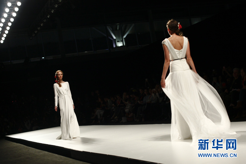 模特在T臺上展示西班牙品牌Victorio & Lucchino的婚紗。Victorio & Lucchino是來自西班牙塞維亞 (Sevilla)的兩位男服裝設(shè)計(jì)師的名字,Victorio和Lucchino同時(shí)也是西班牙本土知名時(shí)裝設(shè)計(jì)師組合之一。