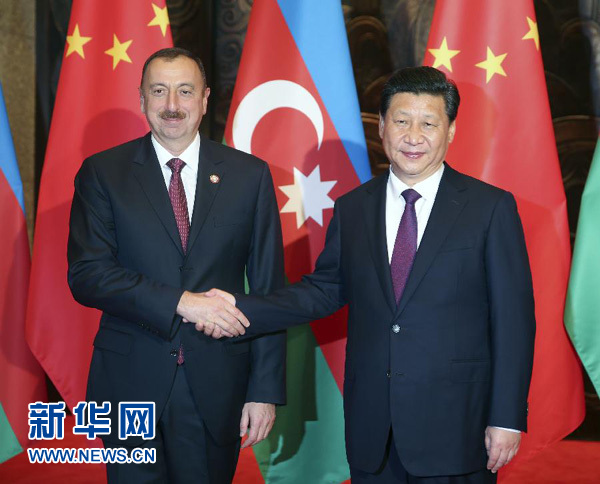 ????習近平表示,中阿兩國友好合作關系在平等互利、相互尊重的基礎上不斷發展。兩國政治關系牢固,互信水平高,務實成果豐碩。中方贊賞阿方在涉及中國核心利益的問題上始終給予的堅定支持,支持阿塞拜疆人民根據本國國情選擇的發展道路,支持阿方維護國家主權、獨立,促進經濟發展的努力。中方愿同阿方一道,密切兩國政府、立法機構、政黨、各部門交往,增進政治互信。中方鼓勵本國企業同阿方在工程承包、基礎設施建設、交通、電信、新能源等領域開展合作,鼓勵兩國人文交流,愿同阿方加強在國際和地區事務中的溝通和協調。