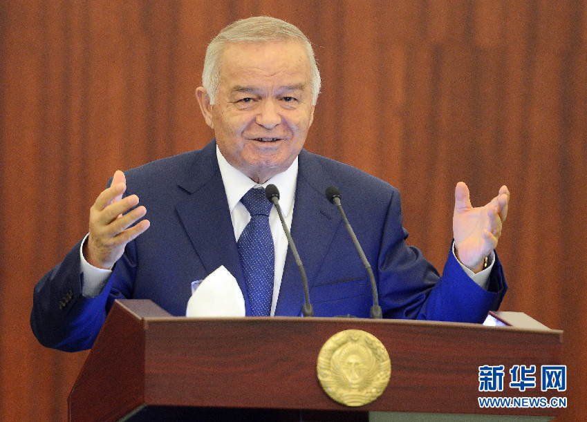 ????6月6日,在烏茲別克斯坦首都塔什干國際會議宮,烏茲別克斯坦總統卡里莫夫在講話。(沙達提 攝)